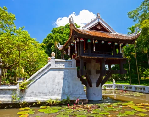 You’ll begin the day with an outside visit to the Ho Chi Minh Mausoleum, where your guide will share stories about the revered leader who spearheaded Vietnam’s independence from French rule. From there, take a short walk through the surrounding grounds to see the One Pillar Pagoda and the Presidential Palace.